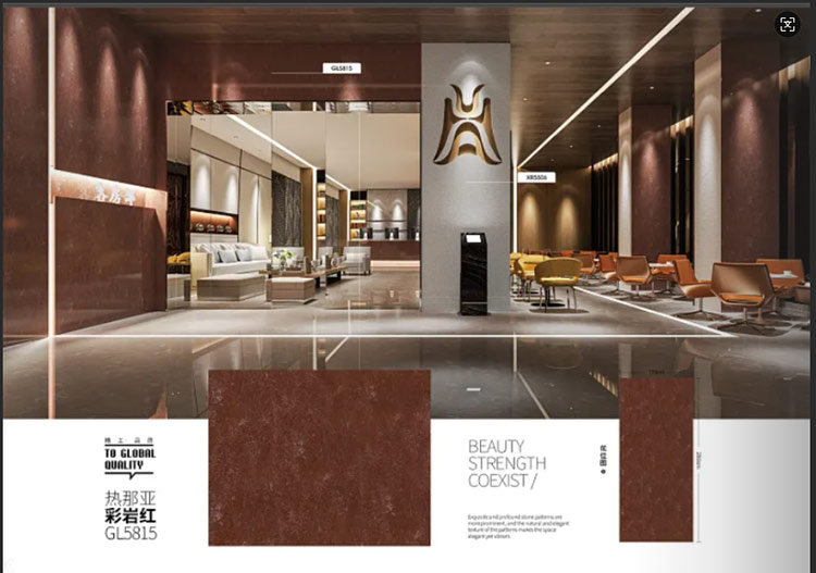 * Tons rubí: rica cor rubí cunha base marrón, apta para crear espazos personalizados, especialmente para áreas de exposicións comerciais ou zonas que precisan resaltar o impacto visual;