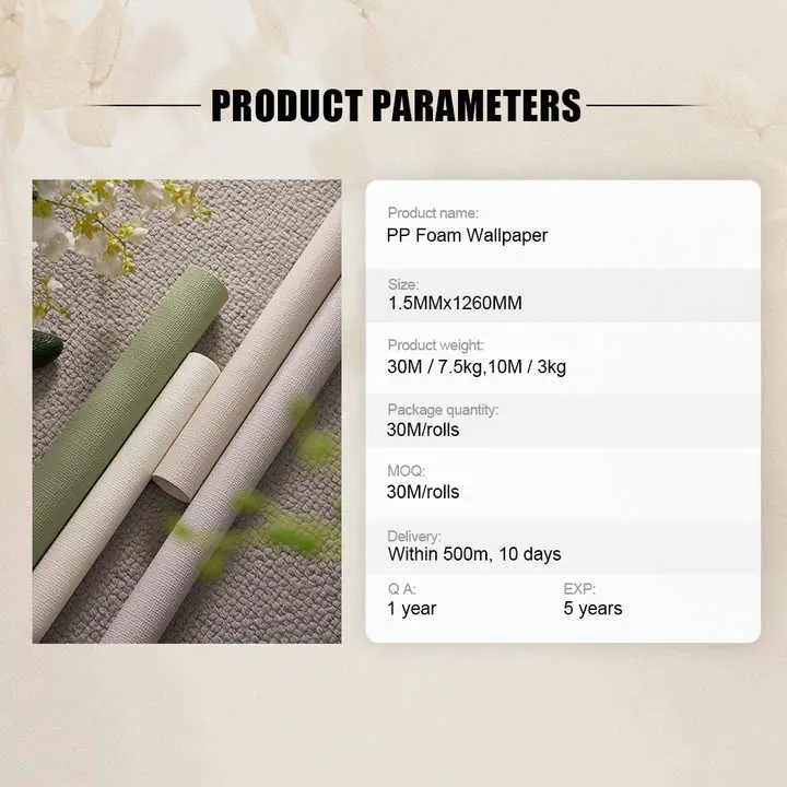 · Beneficios multifuncionais: este fondo de pantalla ofrece unha serie de beneficios, incluíndo propiedades antiestáticas, illamento térmico e unha garantía de 1 ano, proporcionando aos usuarios tranquilidade e unha solución duradeira para as súas necesidades de deseño de interiores.